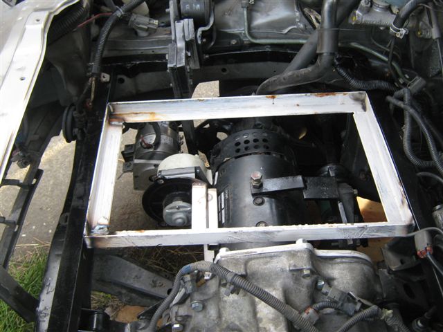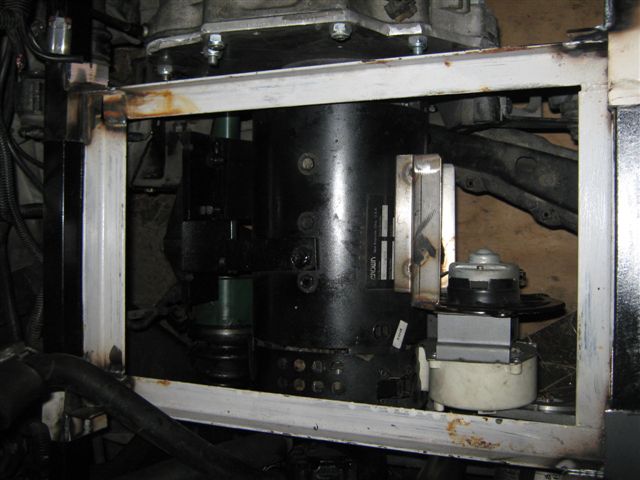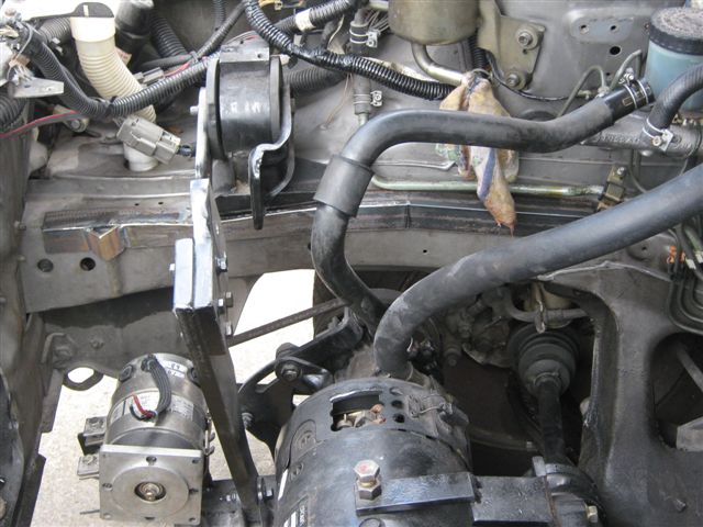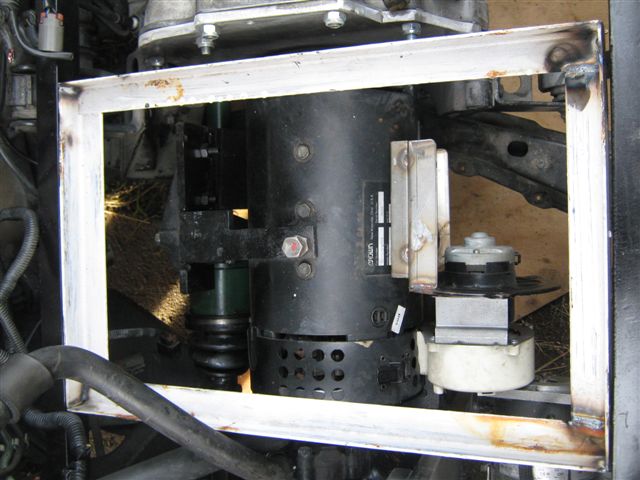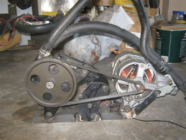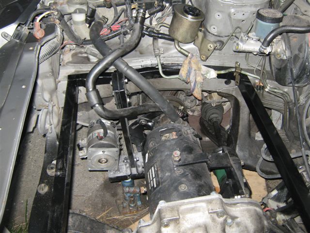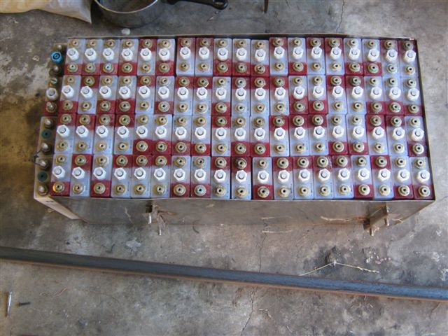 On picture below you can see the pump and electric motor arrangement, the motor that you see on picture is testing motor only, rated at 240v ac - just to check the pump's performance while we are on the quest for the small dc motor Finally we get the motor - 24v, 0.33Hp and continuous rated, and as you see there is another problem because the nominal system voltage of our car is 48 volt and fully charged flooded NI-CAD batteries will get up to 64 volt and power steering motor that rated only at 24 volt will definitely blow up with application of 48v and above voltage, thus we have to find some sort of solution, and the most obvious one is to apply an extra one DC/DC converter and as you see the quest for the motor brought us to the quest for the converter. On pictures below you see the motor and pump is installed completely and ready to be powered up. I would like to remind you that our conversion is totally budget one and all those motors and converters were found on recycle places and junky yards, also were bagged for at some forklift related engineering companies and in most cases were ready to be thrown away, the motor controller for example was removed from a completely dismantled golf cart that was found on junk yard. Here is my battery pack that came from my previous conversion and before that these pocket type flooded NI-Cad cells were discarded from the Antarctica based Scott base, they never been used but their shelf life expired in 2002 so they were transported to New Zealand to collect a dust in storage of one local battery dealer - disposer, and this batteries were the biggest expense of our conversion I paid NZD1200 to get this batteries, I just knew that actual life of this cells will start from the time of the first charging cycle. So now we have to solve then problem of battery arrangement and think of how to fit all 80 cells under the hood. Each cell is rated at 30amps and 1.2v nominal, we will arrange the battery in two paralel strings of 48 volt each. The following pictures are shows the sequence of the supporting frame construction, we decided to build the frame that will follow all bends of the car's chassis box sections and utilize the original mounting spots with the threads in them (many Japanese cars are designed to utilize different power plants, ranges of engine models and also some additional components - so there is plenty of ready threaded spots that can be used for electric components fastening, including our frame that will support the battery racks). Slowly we carry on the fabrication of the frames parts that will be bolted to the car's chassis, as you can see on pictures the fabrication is required some welding and metal fabrication skill, for all welding that was performed in our conversion we used a TIG welder that gives very accurate results. On picture below you can see that one part of the frame is finished and drilled and will be sandwiched between the engine mount and the chassis. The chassis box sections on opposite sides of the car are constructed differently and our frame components are should be different as well, on the picture below you can see the construction of the opposite element of the frame, the frame on this side will be also sandwiched between the engine mount and the car's chassis but not at the top like the opposite component of the frame, we also utilized the mounting points that were available. On pictures below you can see the frame sides are licked with each other by steel angles, welded, painted and bolted to the car's chassis. Now we have to think of how to make and locate the battery racks and battery boxes, plus we should locate and design components layout so that in case of impact we still have our brakes performing, thus we will locate our battery boxes away from the brake system line and also will live enough room for other components installation and service, moreover we should locate our batteries as low as possible and make sure that there is enough room for bonnet to be closed without touching our components. To fit all the batteries under the hood we need to divide the battery pack by two unequal parts- thus the bigger battery box will be installed over the electric motor and will include 56 batteries out of 80 total, the second battery box will be located over the gearbox and consist out of 26 remaining batteries, this layout will provide us with enough room for batteries and other components. The battery rack is welded and ready for painting and installation, the rack will be bolted to the supporting frame later with the threaded steel rods that will also secure the battery box on place. On the pictures below you can also see the small electric motor attached to the side of our traction motor, this small motor is 12 Volt radiator fan motor, the blades were removed and the cooling fan from the microwave oven is attached to the motor, also this small motor is attached to the frame that is bolted to the big motor, the open fan end is pointed into the brash area of traction motor, so as you understand this motor will provide some additional cooling of the traction electric motor by forcing the air into the motor. the cooling motor is connected to the DC/DC converter via relay, this relay is switched on by the signal from the accelerator/potentiometer - so the cooling fan is working only when cat is mowing or traction motor is rotating. Continue to page 4. |